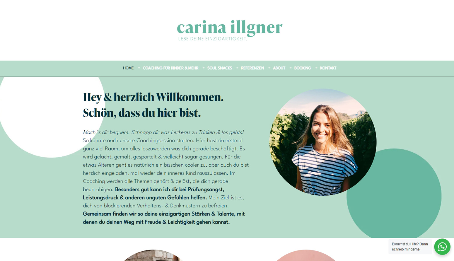 Carina Illgner is a learning and life coach based in Munich. The website refresh I did for her executes her visual identity and gives the website a comfortable, friendly, but professional feel.