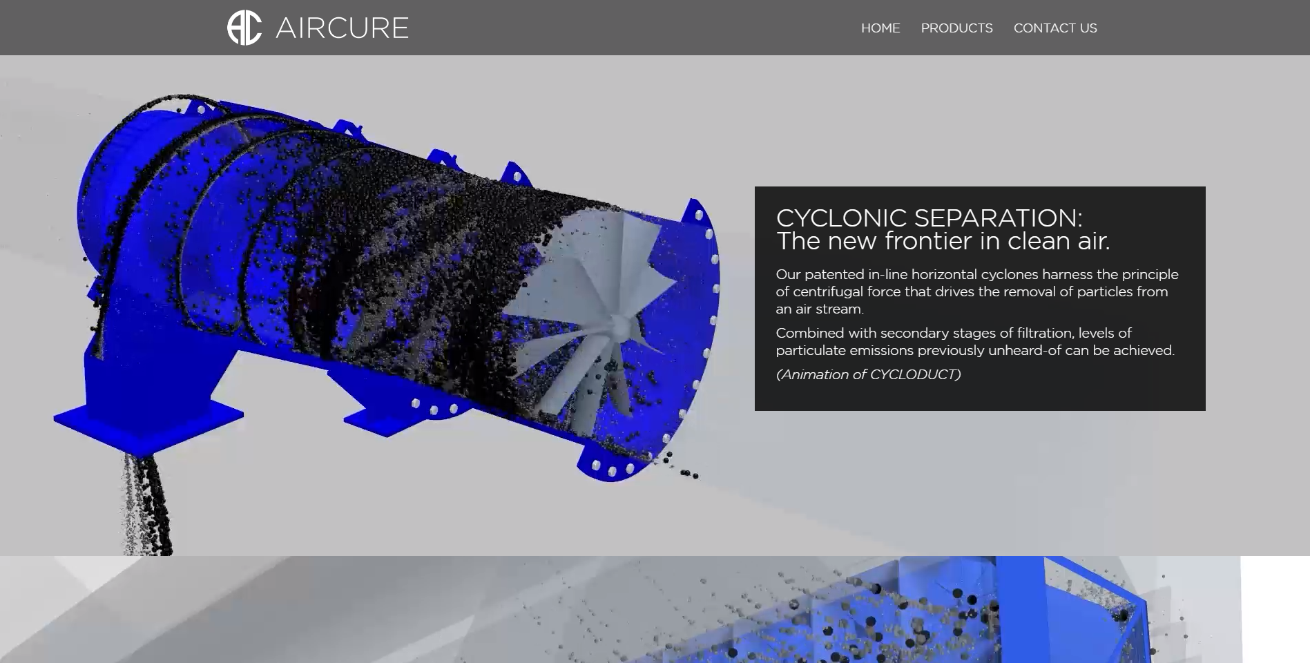 The look-and-feel is bold, minimalist, and clean, with a focus on the products. The website focuses on the core products that AIRCURE offers to showcase the solutions they’ve created in the industry.